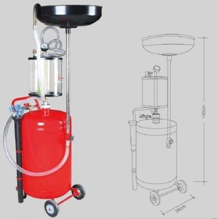 - SPECYFIKACJA: WYSYSARKA - ODSYSARKA - ZLEWARKA na kółkach W komplecie zestaw metalowych i elastycznych sond ssących Łatwe usuwanie oleju ze zbiornika dzięki funkcji samoczynnego opró niania pojemność zbiornika - 70 litrów wysokość misy regulowana średnica misy - 44cm zakres wysokości urządzenia - regulacja - 142cm/124cm długość przewodu spustowego - 170cm manometr zawór kulowy pneumatyczny złączka wlotu powietrza wzmacniany metalowy zbiornik kółka ułatwiające przemieszczanie urządzenia